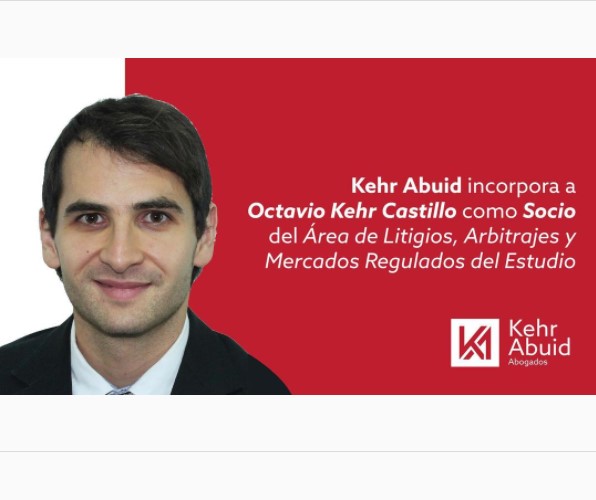 Octavio Kehr, Abogado de la Universidad de los Andes y Master of Laws (LL.M) in International Dispute Settlement del Graduate Institute of International and Development Studies y de la U. de Ginebra, Suiza. Adicionalmente, cuenta con un Postgrado en U.S Law de la University of California, USA.